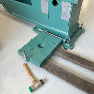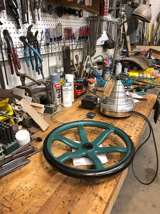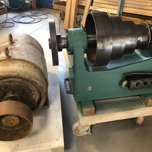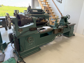 8/16/2025 This was beyond words how amazing this came together! This lathe was in pieces for over 20 years and in at least 4 different states during that time. I found pieces in every part and corner of my shop, unbelievable. One thing I did not find, and I don't think we ever had was the under bed tailstock clamp. Here is my son modifying a banjo clamp for that;
